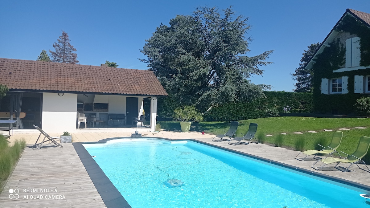 Very quiet area close to the city center, fully renovated 40 m2 studio adjoining our house. With microwave, 4-burner gas stove, fridge, kettle. Bedroom area with large 200 x 160 bed, sofa bed in main area, baby cot and baby chair on request, bathroom with walk-in shower and toilet. Free parking is available in front of the house. On foot: 5 min La Vague water park, 11 min tree climbing, 15 min city center, 12 min train station, 5 min GR70 and GR430, 24 min GR65