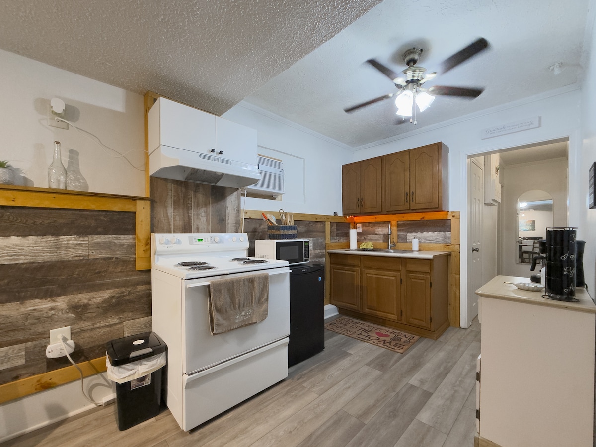 Rustic 1 bedroom unit on 6 acres. Beautiful creek a couple hundred yards from your door with lovely sunsets. Vaulted living room, dual reclining sofa, 50 inch ROKU TV & dinette. Kitchenette with full size refrigerator, microwave, and Keurig coffee maker. King size bed, cozy electric fireplace, 32 inch ROKU TV and closet with washer/dryer. The grounds are shared with one other tenant. FT Knox-6.2 Miles Elizabethtown Sports Park-15 miles Church Hill Downs-36 miles Boundary Oak Distillary-7 miles