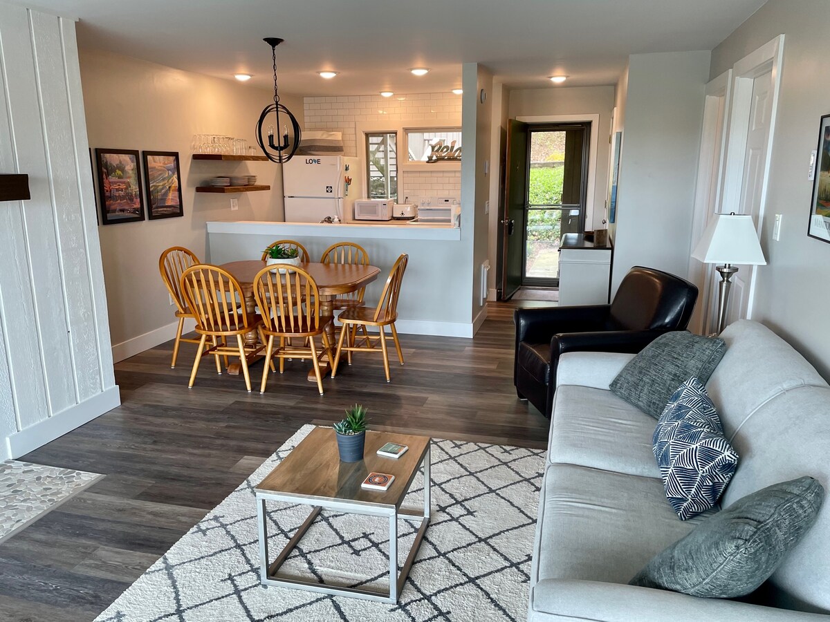 Efficient condo on the Old Course at Sugarloaf. Updated kitchen, modern furniture (high quality mattress), sleeper sofa, large jetted tub, fast internet, cable, and private patio. 5 min. to Good Harbor Beach, 10 min. to Leland and 30 min. to Traverse City. Easy access to wonderful year round activities. Perfect for a golfing, outdoor adventure or wine tasting trip, or simply a change of scenery for a remote worker. Cross country ski on the golf course, hit the sledding hill across the street!