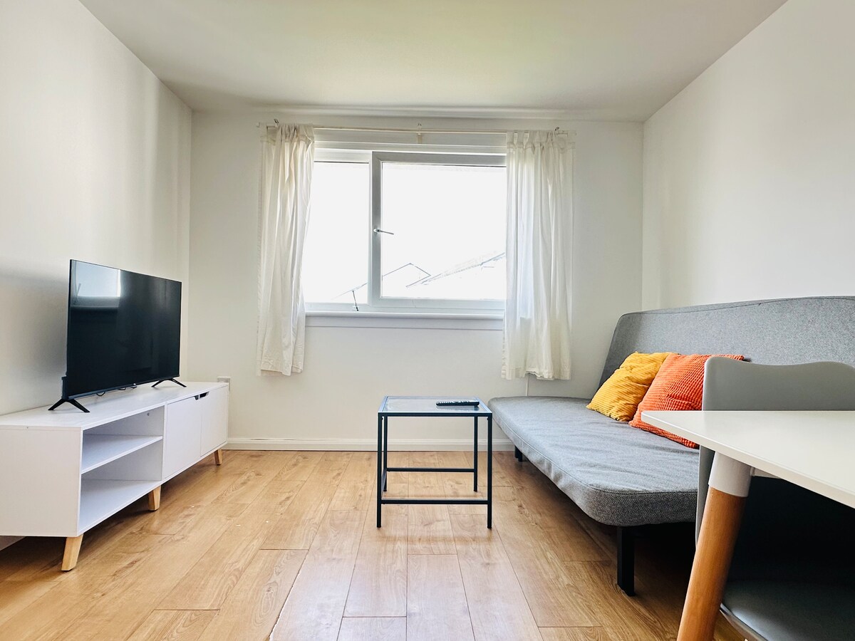 Wake up to sweeping views of Newhaven harbour. Have morning coffee with sunny castle views. This bright, king-size one-bedroom flat in Trinity/Newhaven offers the perfect mix of coastal calm and city buzz Perfect for couples or solo travellers. Located in quiet traditional 3rd floor flat. Newhaven Tram & bus links to the city centre & airport. FREE on street parking. City centre (1.9 miles) is 45min walking distance via an inner city tree lined path. Self check in via lock box right outside