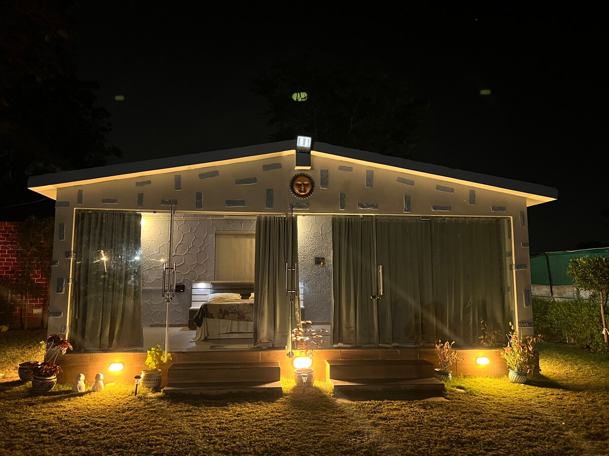 Privacy First: 4 large bedrooms 🛌, fully separated from each other in different blocks for complete privacy. Indoor Comfort: Huge gathering hall 🎉 & a spacious, well-equipped kitchen. Outdoor Luxury: Sparkling Swimming Pool 🏊 & relaxing Jacuzzi 🛁, plus garden sit-out areas. The View: Experience soothing, uninterrupted green farmland vistas 🌳 every day. Perfect Blend: Rustic comfort meets natural tranquility. Book your serene getaway now! ✨