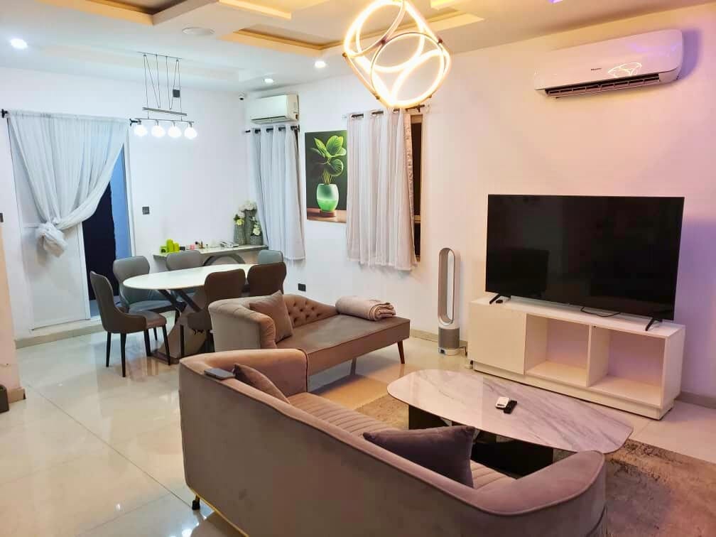 Welcome to your Lagos reset HQ — 1 luxurious bedroom retreat in atewolara road, admiralty homes estate. Unwind with a 65"inch smart TV, PS5 gaming, ice-cold AC, and uninterrupted 24/7 power supply. Perfect for, work, solo resets, or small family trips. The kitchen's fully equipped, WiFi's blazing fast, and the vibe?Insta-worthy. Guest access 1 luxurious bedrooms designed for total comfort, privacy, and soft life living. A spacious living area Play station 5 private compound Free parking