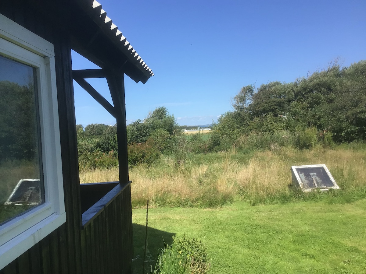 Small cozy, rustic house directly connected to the greenhouse. The house is an annex to our thatched house located in a south-facing forest edge Surrounded by a large garden. In the house, there is a double bed, sofa and coffee table and ladder to a small loft. The house is heated with a wood stove, firewood included. Simple kitchen facilities, but it is possible to cook a hot meal. Toilet and bath in the main house, directly at the entrance from the guest house. Toilet and bath separate, shared with the host couple. The house is beautifully located, near the fjord, sea, Thy National Park
