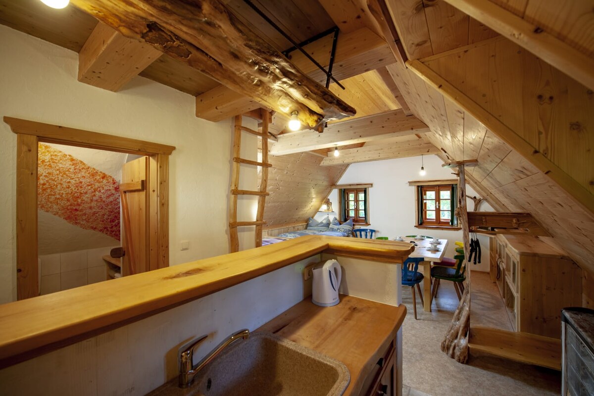 Loft in the studio This stylish, cosy loft in Etienne's studio is located on the edge of the forest outside Bad Ischl in the Salzkammergut region. Art and nature lovers will find plenty to enjoy here. Get up close and personal with the artist Etienne, who paints on the ground floor of the studio. The view of the picturesque mountain scenery is breathtaking. From the terrace on the east side, you can enjoy the morning sun over breakfast and have a wonderful view of the garden, which features a pond and a BBQ area.