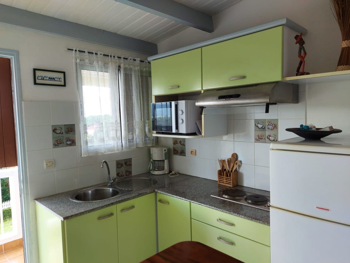 We welcome you to this beautiful 3-bedroom apartment at the bottom of the villa with private pool and sea view. It consists of a living room with open kitchen overlooking a large outdoor terrace that can accommodate you during meals and moments of relaxation, 2 air-conditioned bedrooms (1 king size bed + a single bed), a bathroom and separate toilet. You have access to a beautiful sunny pool directly from your terrace. Very good location in Guadeloupe, close to all amenities.