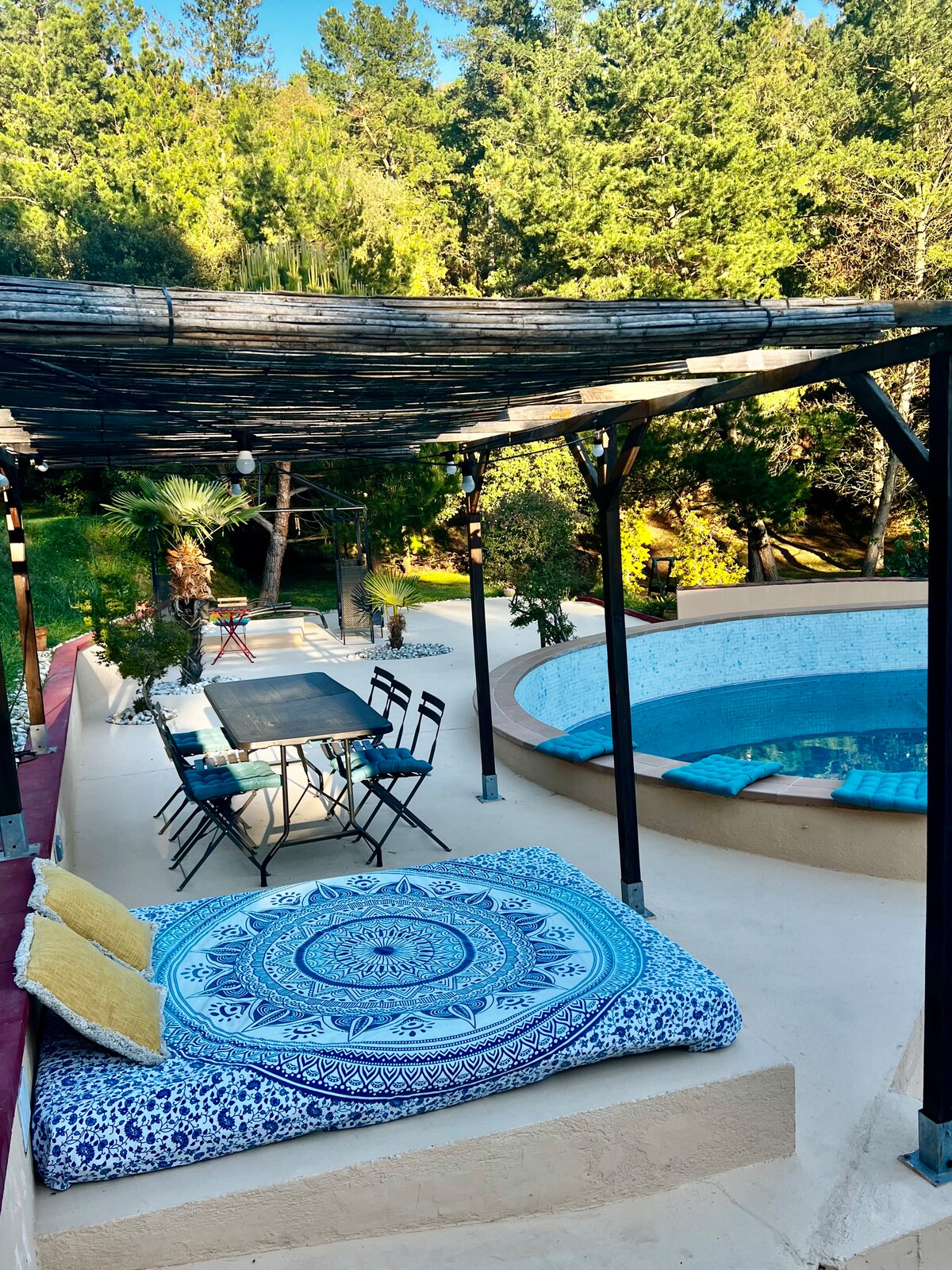 A small house with a feeling of space surrounded by nature: a massive garden full of flowers and trees, flowing water, swimming pool, 2 terraces to enjoy breakfast with the morning sun, a languid lunch overlooking the garden and evening cocktail to celebrate the sunset. There is a master bedroom, a room with a bunkbed, a sofa bed in the living room. A great place to unwind, relax or to base a wider activity holiday: Less than 60 mins to Barcelona, Costa Brava beaches, Waterworld, mountain walks.
