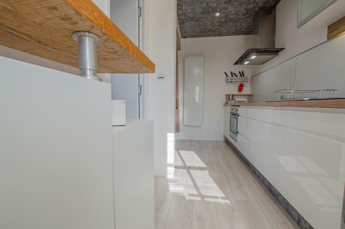 "Lovers' Nest" is the ideal place for couples seeking relaxation and zen. This fully renovated 70 m2 house has been furnished and decorated in natural shades and materials by a decor addict. This cozy cocoon is the perfect place to meet as a couple and have a good time together. The +: jacuzzi, massage room, video projector with home theater Beautiful services, tasteful decor and pretty materials such as polished concrete, linen, organic cotton...