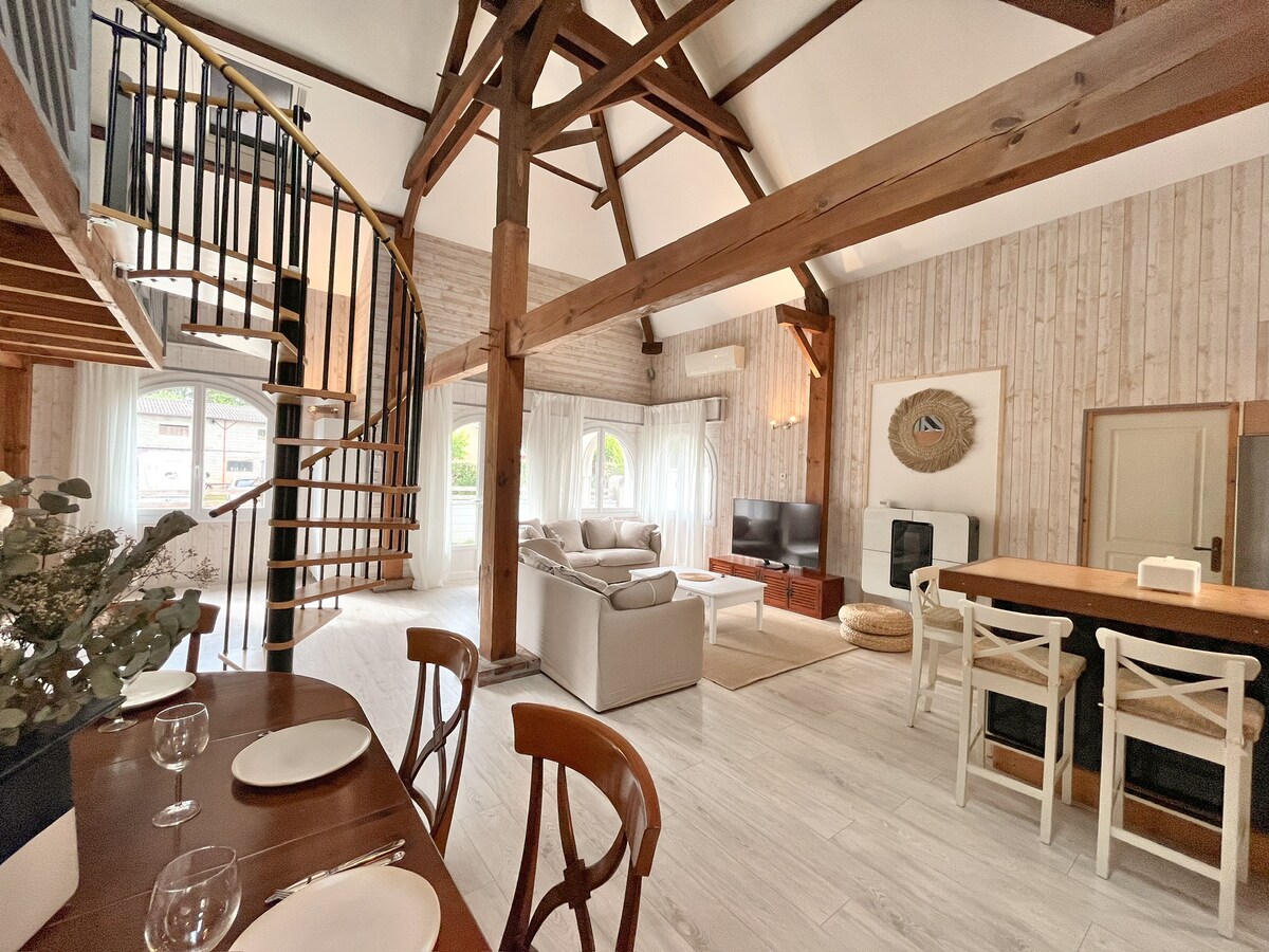 Nestled approximately 15 km from Contis Plage amidst pristine natural surroundings, you'll find this former wine cellar dating back to 1835. This historic building, renovated and extended by an architect 12 years ago, graces an expansive 11-acre expanse of traditional "arial landais" land. It offers a unique escape into the heart of unspoiled natural beauty, with the picturesque villages of Levignacq and Uza each situated around 4 km away.