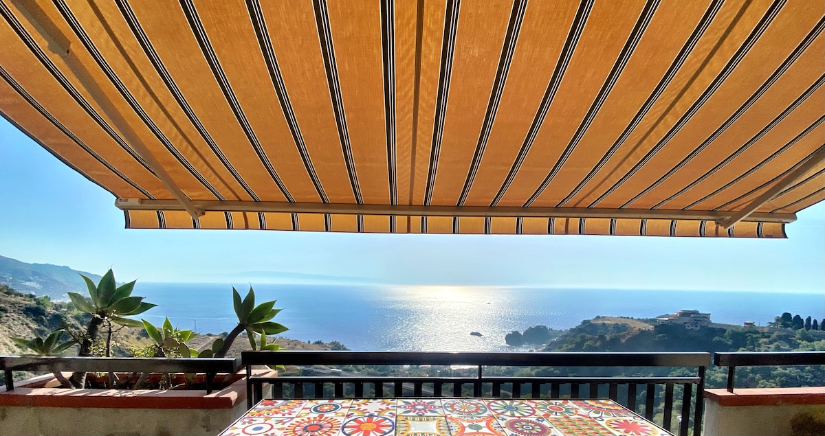 Large apartment of about 42 square meters with terrace, finely furnished, for a maximum of 2 people, located on the mezzanine floor of a building without an elevator. The accommodation, which boasts an extraordinary terrace, is located in Giardini Naxos, a wonderful seaside resort just over 1 km from Taormina and all its beauty, and just 30 meters from the sea. The tourist tax is 2 euros per person per night and is to be left in the apartment after departure.