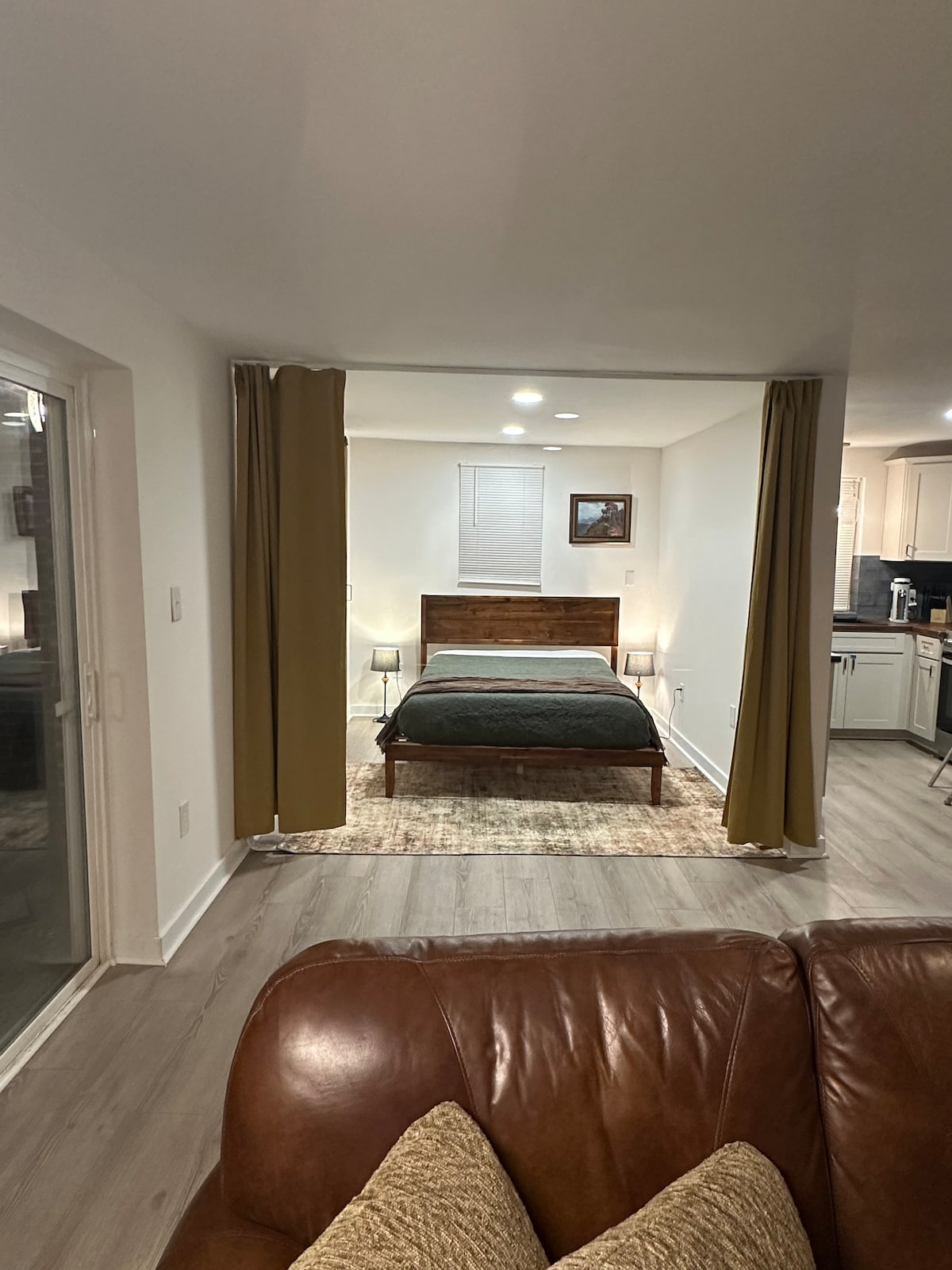 Retreat to this country getaway and gaze at the twinkling constellations under a Tennessee sky. If you’re looking to escape from the city, Sky Farms is a comfortable visit back to nature. With a private carport and entrance, this beautifully decorated, two-bedroom basement apartment comes with a kitchen, full bathroom, living room and patio with brick fire circle. *There is an additional pet fee of $100 per stay payable upon arrival. *Do not leave your pets unattended. Keep off the furniture.