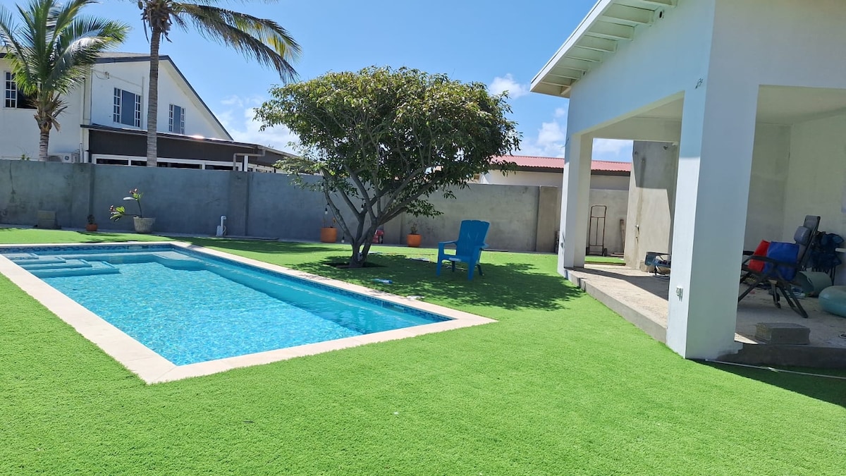 Escape to our Mediterranean villa and enjoy the white sands of Aruba the happy island, stay in a luxury apartment with the best comforts of a Caribbean home, entrance from the garden area, relax in the pool and enjoy our tropical garden in the hammock under the palms. BEST LOCATION *Palm Beach 400 meters walking *Noord supermarket 350 meters walking *Just a 4-minute drive from the restaurants, nightclubs and shopping. ~CHILDREN ARE WELCOME.