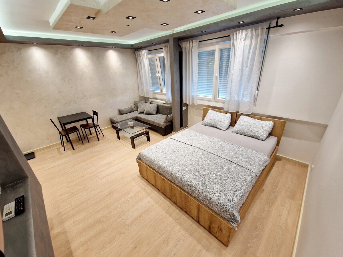 Modern Studio in New Belgrade | Business Hub + Free Garage Stay in a stylish, fully-equipped studio in New Belgrade’s business district, ideal for business travelers & city explorers. Enjoy self-check-in, 24/7 reception, free high-speed WiFi & a private garage. Walk to offices, shopping malls & top restaurants, with easy access to the Sava River, airport & city center. Book now for a seamless & hassle-free stay!
