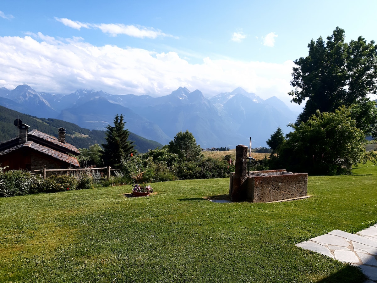 The house, located in a characteristic mountain village in the Nus hills, a short distance from Aosta, will allow you to spend a vacation immersed in the tranquility of nature. We are located in the Saint-Barthélemy valley, not far from the astronomical observatory and its ski area with 30 km of cross-country ski slopes and itineraries on foot, by bike or with snowshoes. The location in the center of the Valley is also ideal for those who want to visit the towns and monuments that the region offers.