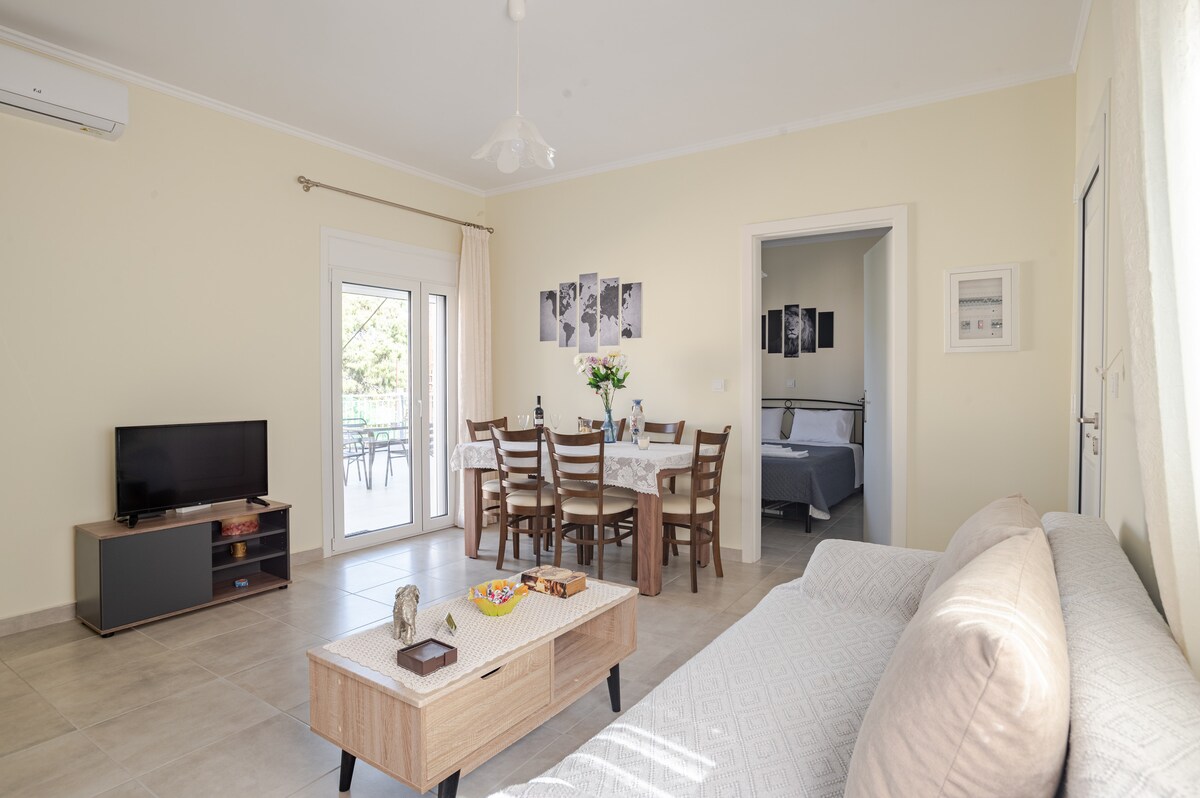 Beachfront Luxury bedroom apartment with unique sea view balcony, close to Nafplio in Kiveri village. Apartmetn is just on the beach, only few steps drive to a small beach. The apartment consist of a seperate bedrooom with double bed, a living room with full equipped kitchen, a single sofa bed and a duble sofa bed. It is an ideal location to relax on the sea and to visit in only few minutes away from Nafplio and the most ancient places in Argolis such as Mycenaes, Epidaurus, Tiryns, Argos.