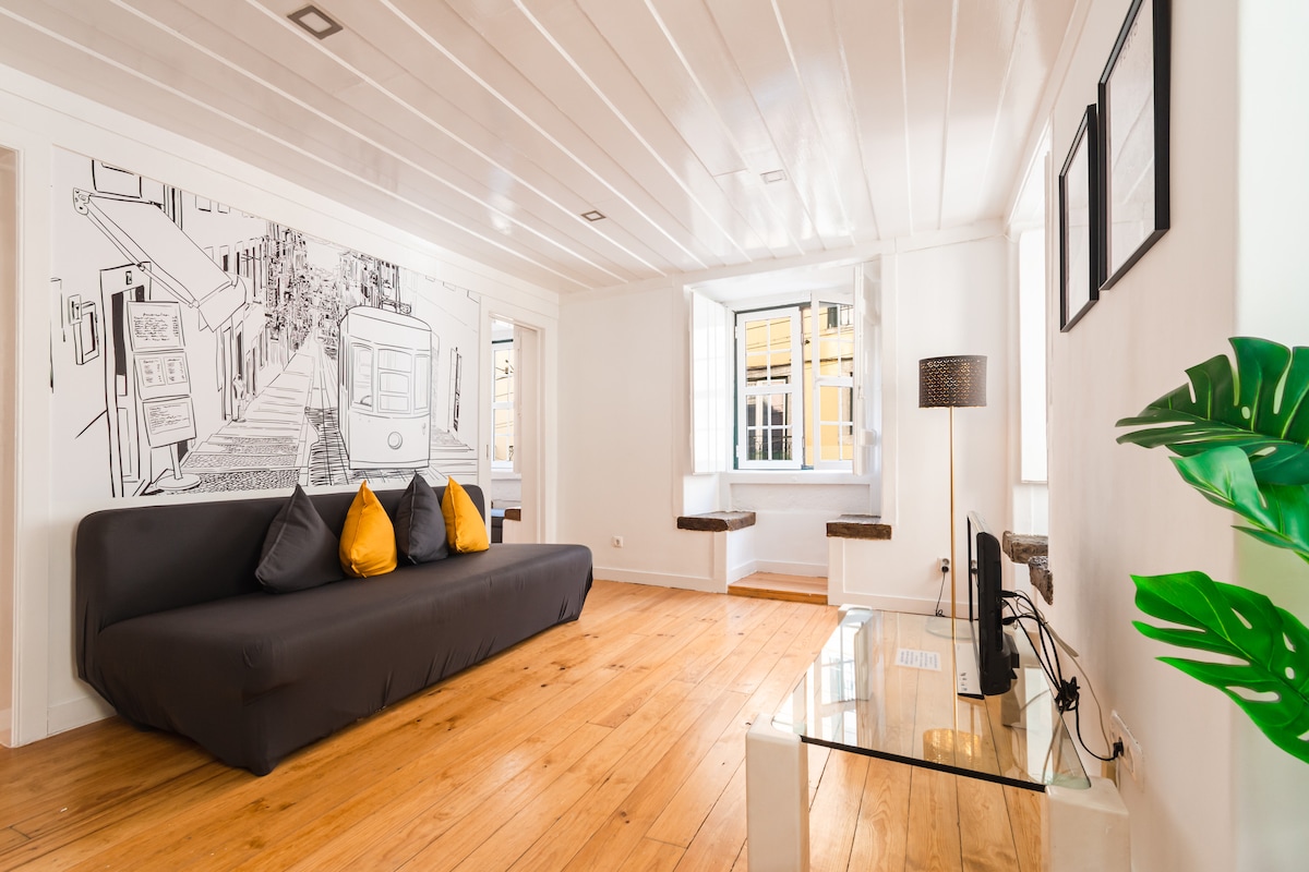 Settle down in the reading nook after a day exploring the streets of Lisbon. This apartment is housed in a historic 18th century building that was completed renovated in 2016. It benefits from a contemporary design, following modern and simple lines. The apartment is totally renovated and it is in the heart of Lisbon. Inside the apartment, You'll find all the amenities and comfort for a great short or long stay in Lisbon and accommodates 4 very comfortably. It has a bedroom with 2 beds and a living room with an oversized sofa bed with 2 beds. You will have access to the air conditioning, heating, wireless internet, cable tv, iPod dock for music, completely new kitchen equipped with dishwasher, washing/ drying machine, fridge, coffee machine, orange juice squeezer, kettle, oven. In the bathroom, You have a hairdryer and all the amenities. In the bedroom, You have a very big wardrobe to put all Your things! The decoration of the apartment follows modern and simple lines just to make You feel comfortable. Access to all apartment We are always present at the check-in. The apartment is located in the heart of downtown Lisbon, with excellent coffee shops, supermarket, the metro, trains, trams and the river close by. There is easy access to a car park, supermarket and delicious home bakeries, and restaurants. You will find everything near to the apartment. You have a supermarket in 2 minutes, restaurants and bakeries 1 minute, car park (fee per hour or day and weekend and night free) at the street. Tram nº28 passes just at 50m and metro Baixa/Chiado 10 minutes walking. Castle, churches, Praça do Comércio.... and all the great sights You can reach walking. Visit Sintra village You can go by train, just walk 10 minutes to train station. To visit Cascais and the beaches You can walk 15 minutes to the train station. We are 24h available for our Guests!