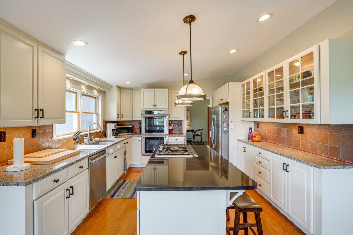 Serene, elegantly appointed 19th century compound, fully modernized and set on the edge of a 50 acre land preserve next to boat friendly Bantam Lake. Located in the rolling hills of Litchfield County this expansive home has four buildings and every amenity: pool, hot tub, heated gym, cedar sauna, central AC, 2 chef’s kitchens, game barn, primary suite with wb fireplace and soaking tub, a pool house guest suite with steam shower, & treehouse w/ slides & a swing set built on a 300yr old oak tree.