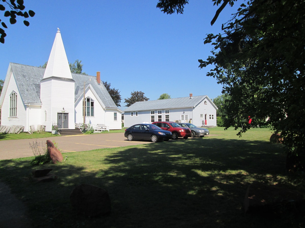 This 3 bedroom 2.5 bath home has been converted from being an actual church hall to a year round tourist accommodation. Situated in the picturesque fishing village of Murray Harbour in the south east corner of Prince Edward Island makes the location convenient to ferry travel to Nova Scotia or the Magdalen Islands. Distant water view and just a few meters from the boat dock in one direction and a short walk to the Confederation Trail . Large parking lot for guests.
