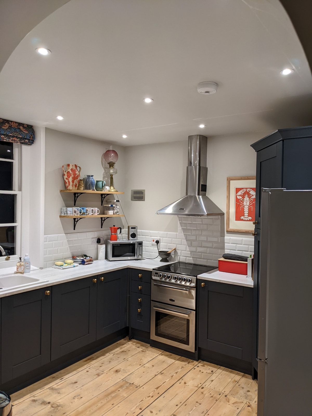 Cosy Cottage is a beautifully decorated holiday home in the centre of the quaint Georgian Market town of Holt. Cosy Cottage is filled with charming touches and is luxuriously furnished to provide you with a comfortable and relaxing base to explore Norfolk from. With a beautiful crushed blue velvet sofa and the renowned William Morris wallpaper, the sitting room dinner is perfect peaceful place to cuddle up after a fun day exploring North Norfolk.
