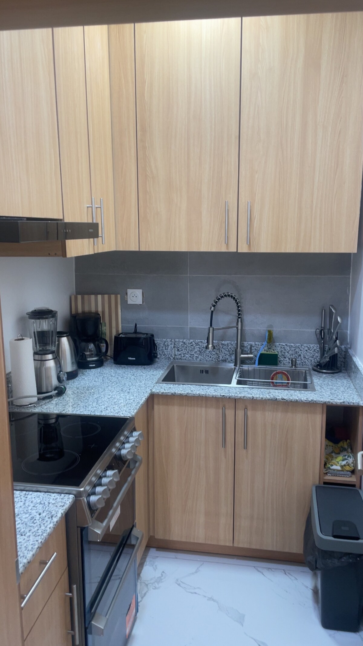 Cozy T2, Equipped in Agla Figaro, this charming air-conditioned T2 offers you a comfortable stay with: * Living room: 3-seater sofa, 55" QLED Smart TV, dining table. * Air-conditioned bedroom: Queen size bed, desk, wardrobe, iron/ironing board, Bluetooth air blower/lights, ensuite bathroom with built-in water heater. * Equipped kitchen: Washing machine, oven, microwave, fridge, stove (3 gas burners + electric hob). * Extras: Corridor, stationary bike, guest toilet, small terrace.
