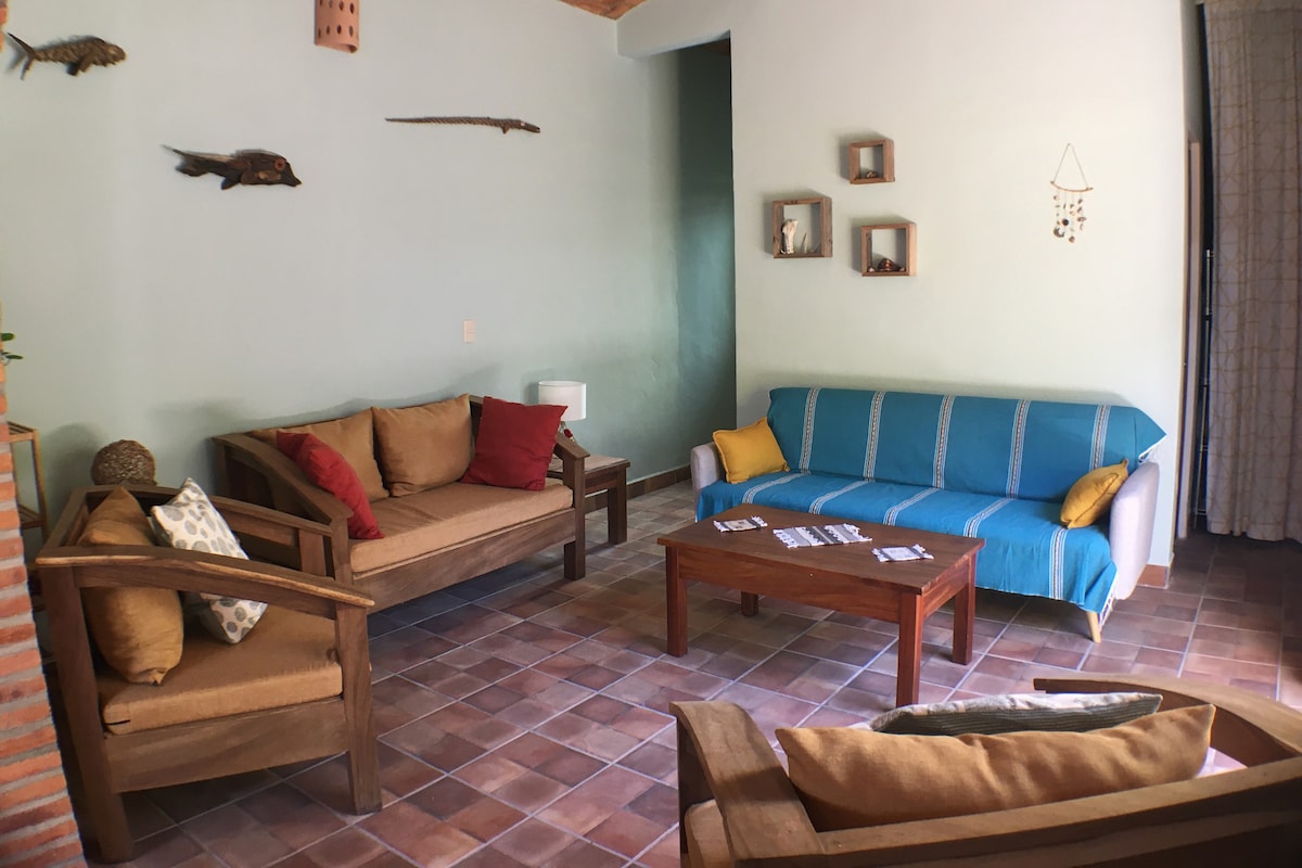 Enjoy this quiet, spacious, stylish and comfortable apartment in the relaxing coastal town of Lo de Marcos. The unit is equipped with everything you should need to make your stay comfortable and convenient and it features a beautiful rooftop terrace with nice views. The apartment is about a 10 minute walk to the beach and just a few blocks from the town’s main street. There is also a nice grocery store a few blocks away with very friendly staff. All are welcome here!