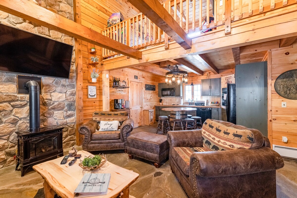 Beautiful authentic log cabin in tranquil Locust Lake village. 4 lakes, numerous amenities, a skill hill, and 26 miles of community road in the heart of the Poconos. In the middle of 3 ski resorts and close by to 2 year round water parks and several state parks. This cabin boast one of a kind flagstone floors throughout entire lower level. It has 3 nice size bedrooms and a beautiful gaming loft all equipped with their own wall mounted tv. Fire pit and 8 x 14’ hot tub/swim spa out back.