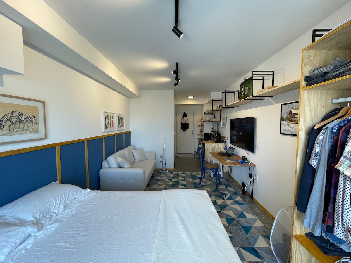 Studio 40011: 4 min from Allianz Park. Compact, modern, complete and comfortable studio in one of the most cultural regions of SP. 📍 Surrounded by cafes, restaurants and shows. Here the city pulsates ✨ Cozy bed, countertop, cabinet, air conditioning, TV, and kitchen equipped with sandwich maker, air fryer, coffee maker, stove, refrigerator. 🚿 Private bathroom and cozy lighting, with that "I want to stay a little longer" vibe Perfect for enjoying, resting or working. Book now!