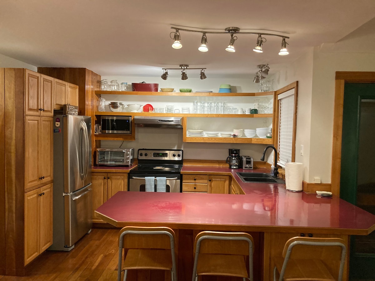 Have fun with the whole family at this stylish townhouse oasis. The townhouse features 3 bedrooms, 2.5 bathrooms and 4 beds. The principle bedroom has a king bed, the 2nd bedroom has a queen bed, and the third bedroom has a queen bunk bed (qn bttm, qn top). The house features a large deck with a gas bbq, outdoor dining, and lots of lounging space. Right behind the townhouse is a beautiful nature ravine with lots of trails. Come, enjoy and relax. The property offers super high speed internet.