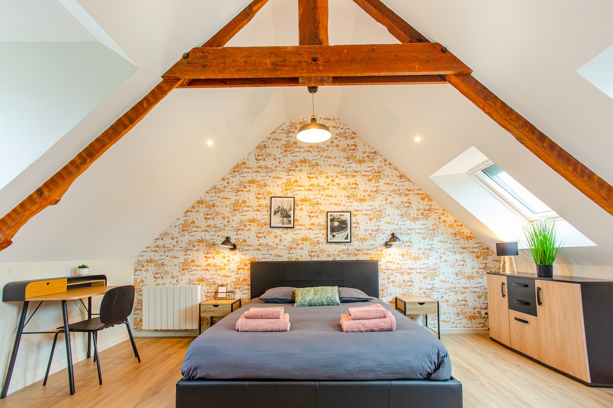 ✅ All-inclusive rate! Cleaning fee, linens and towels, beds made, shower gel, coffee & tea on the 1st day, maintenance kit, 7/7 assistance. Ideal for staying in Lorient, come and enjoy this large renovated Duplex on the 3rd and top floor. Located 50 m from the TGV station, on a pleasant street with shops and restaurants, the city center is a 10-minute walk away. You have a pleasant living space, a fully equipped open kitchen and a beautiful cocooning duplex bedroom.