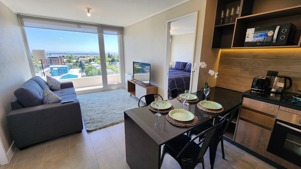 Modern and central apartment in Los Angeles, located on Av. Gabriela Mistral, near the hospital, supermarkets, schools and public transport. It has 2 bedrooms, 2 bathrooms (one en suite), equipped kitchen, living room with Smart TV and Wi-Fi and parking. Ideal for families or professionals looking for comfort, location and tranquility in a fully equipped space.