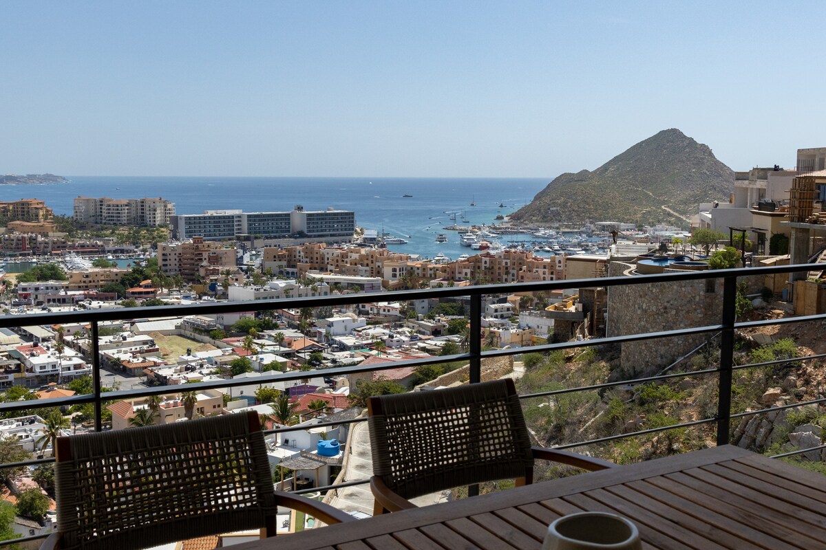 The condo's 180º view lets you enjoy sunrise and sunset at the Cabo Arch from your breakfast-dinner table! Terrace design offers intimacy and escape. Ideal for a romantic stay, home office with paradise views, BBQ dinners with sunset vistas, relaxing hammock siestas, whale-watching while cooking, and sunrise views from bed! Walking access to Cabo's top two beaches and next to The Cape and Thompson Hotel. Please remember, this is a rental condo, not a hotel, and the price reflects that.