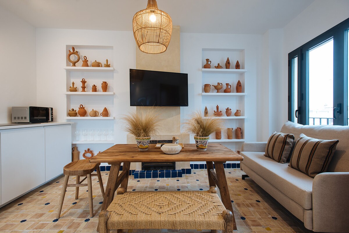 Incredible penthouse with elevator for up to 3 people, with 2 private terraces for the exclusive use of this apartment. The highest terrace has panoramic views of the entire city, and you can see more than 15 historic towers of the historic center, including the Giralda of Seville Cathedral in the distance. It is very exclusive and original and has been conceptualized with a modern style but without losing the essence of yesteryear, and equipped with all the amenities and details for guests.