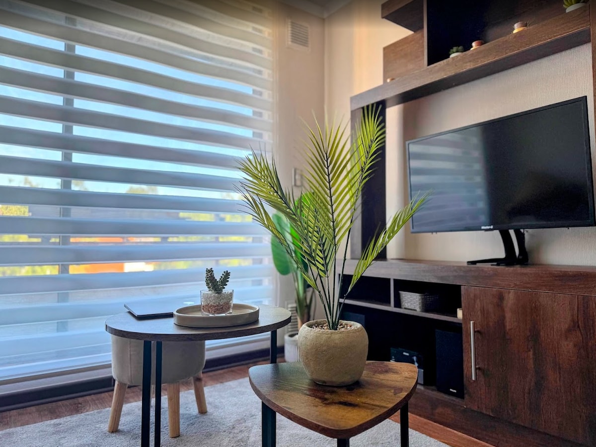 Relax in this quiet, safe, and elegant space, with good connections to the city's downtown and points of interest, just 10/15 minutes to downtown by vehicle! - Supermarket next to the condominium. - A restaurant with an excellent menu and cocktails just a few meters away. - Valdivian craft brewery, with a variety of beers and a pleasant terrace, a very short distance away. - 24/7 security service.