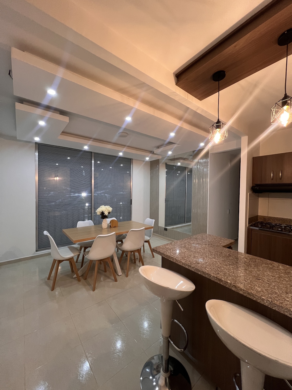 💫 Elegant & relaxing near Mayales Mall 🧘 🛋️ Living Area: Furnished, large TV, high-speed Wi-Fi, and balcony with mountain views 🏔️ 🍽️ Kitchen: Fully equipped with breakfast bar, fridge, and blender. 💦 Laundry: In-unit washing machine. 3 Bedrooms (all with AC ❄️): 🛌 Primary: Double bed, TV, closet, and private bathroom. 🛌 Secondary: Two rooms with double beds and closets. 🚿 Guest bathroom in the hallway. The perfect blend of comfort and style!
