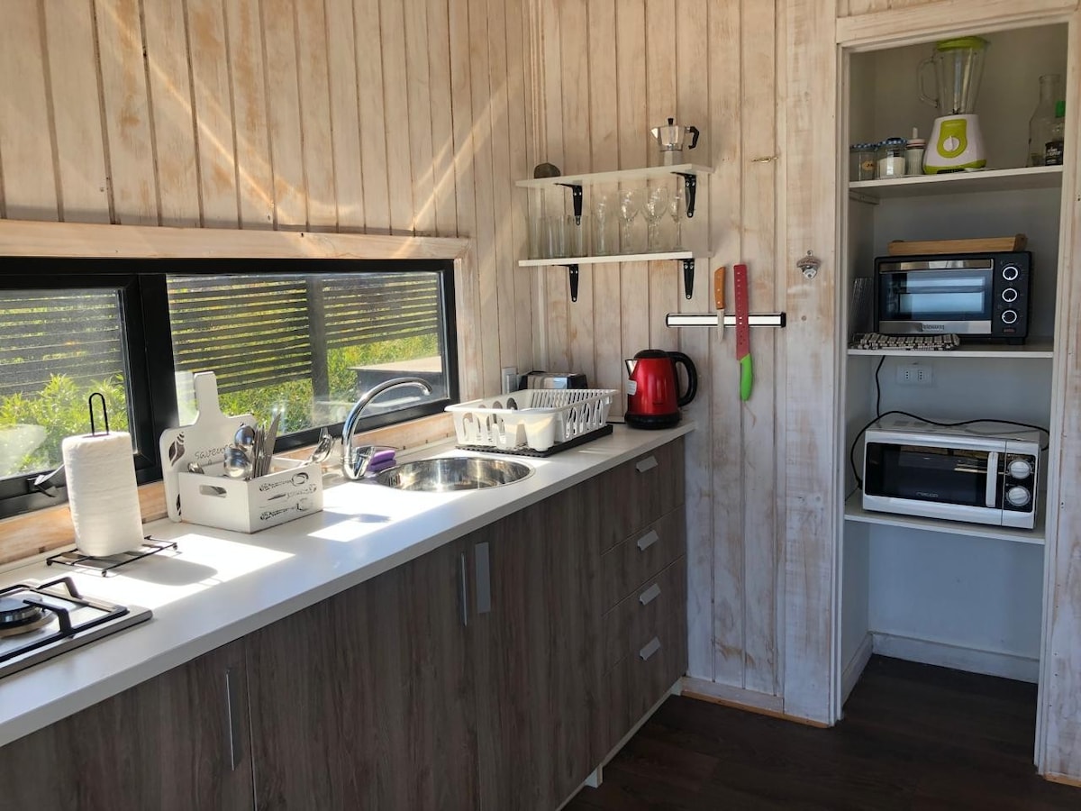 Un refugio tranquilo para desconectarte y descansar. Relájate en la Cabaña Azul, un espacio acogedor rodeado de árboles frutales, ideal para una estadía tranquila en Los Vilos. Cuenta con interior cálido de madera, habitación cómoda, cocina equipada y baño moderno con agua caliente. Ubicada en un terreno familiar compartido, ofrece un ambiente seguro y silencioso. Incluye estacionamiento interior, WiFi, TV cable y calefacción. Ideal para parejas o viajeros que buscan calma y comodidad.
