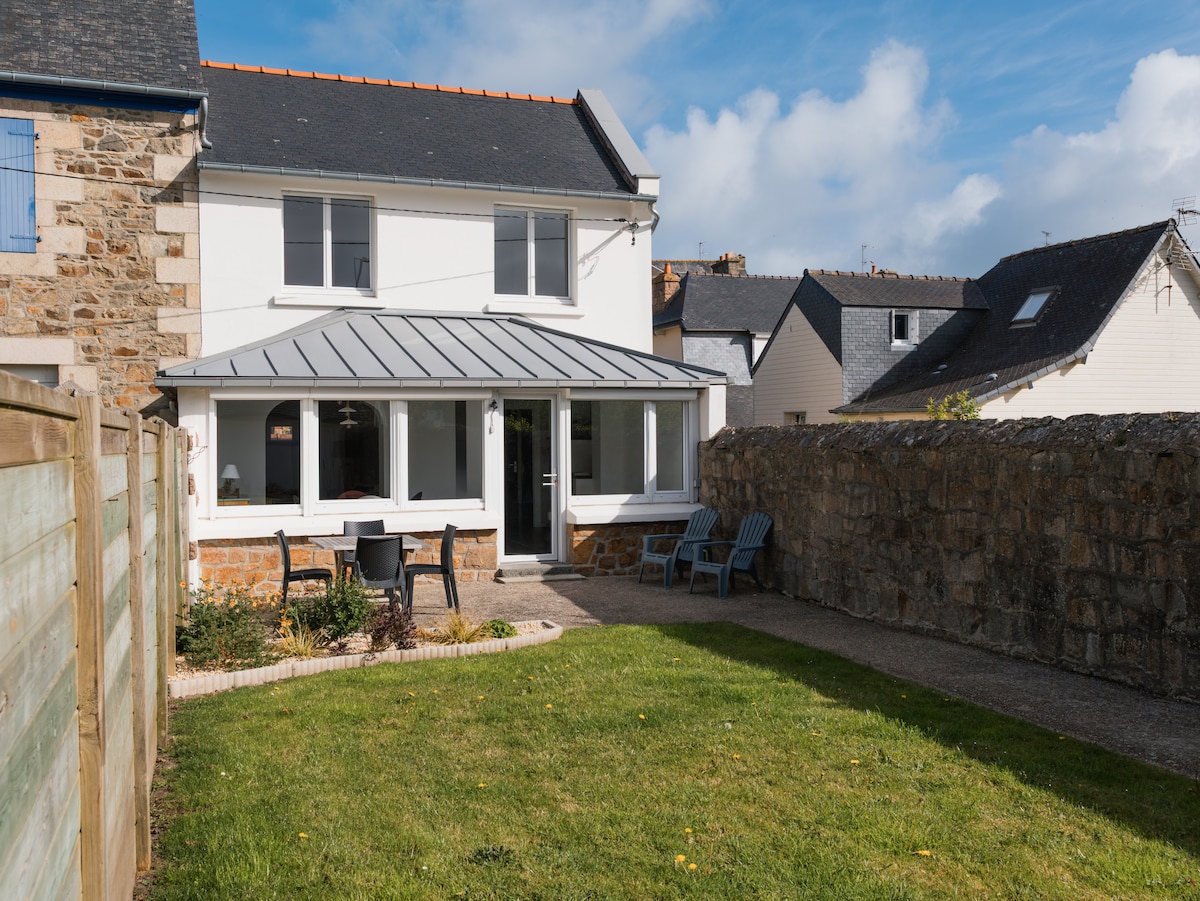 "Ty Bleue" Traditional Breton house, nestled in the heart of Perros-Guirec, between beach and port (10 to 15 min walk), close to all shops and services. The house offers the tranquility of the countryside in the heart of the town. A large living room with fireplace and three bedrooms, one on the ground floor Outdoor spaces that offer good moments of conviviality and rest.