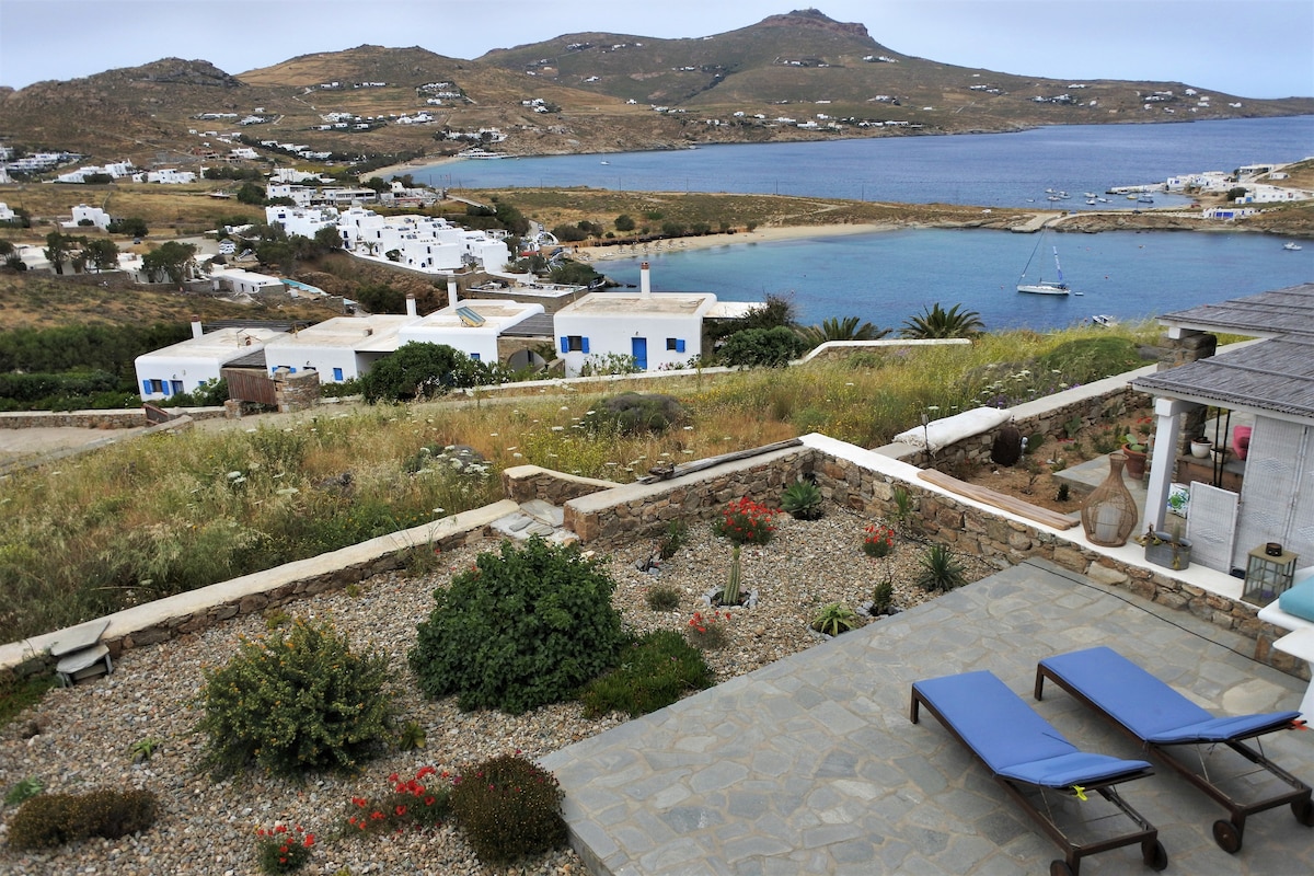 A simple studio for 2. The perfect location for someone that would like to relax in a peaceful area. The sea is only 200metres from the residences(3minutes by feet). It has fantastic sea view. It would be our pleasure to accomodate you to our place. Let us assist you organise your vacations on Mykonos on based on what you are interested to do more. We welcome our guests like our friends and we behave them like members of our family.