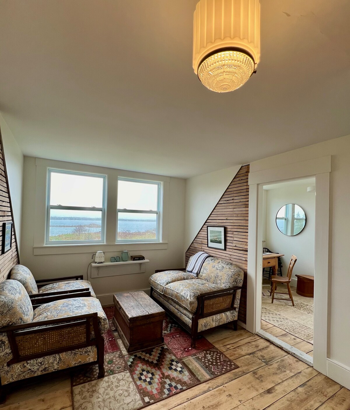 NO CLEANING FEE!!! Located in West Pubnico, 840 square feet of open space decorated in mid century modern style and all white shiplap. There is a 3 piece bathroom with a shower. The rental is above our garage and set back from our house. You will have a beautiful view of the ocean and a path to walk down to the shore. We are close to a grocery store, liquor store, hardware store, banks, church, and a 30 minute drive to Yarmouth or a 2.5 hour drive to Halifax. Sunsets are free.