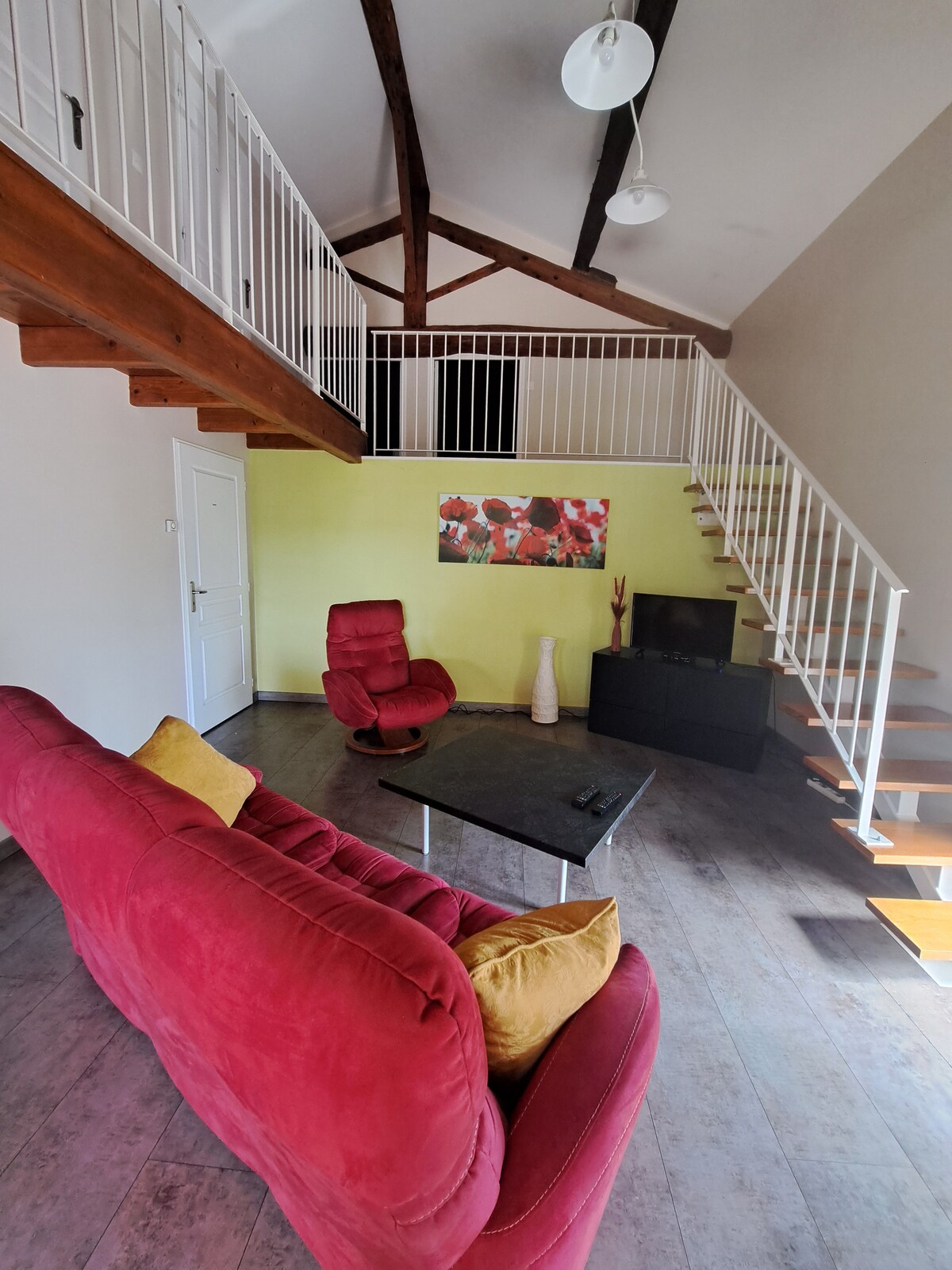 Welcome to our perfectly equipped studio! Located in the Pierres Dorées area, at the gateway to Beaujolais and 20 minutes from Lyon, whether you're in the region on vacation, for work, or just for a stopover, come and enjoy this location in a quiet, wooded environment, close to all amenities (transport and shops). From the terrace, which offers private access, you'll enjoy the sound of birdsong and might spot agile red squirrels!