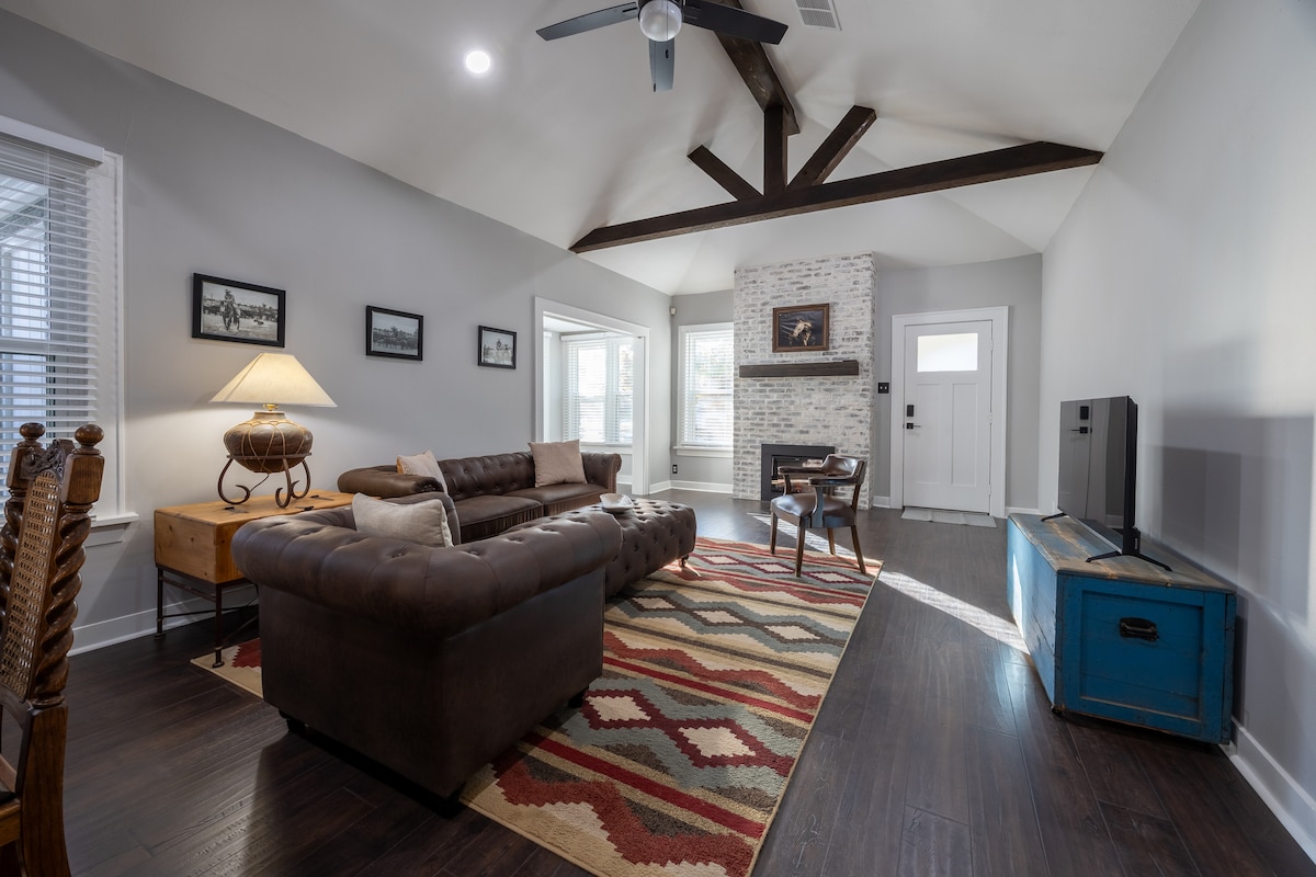 Jump back in time at with your group at The Charleston. This retro-vibe home is an exciting way to embrace the city and the vibe of Lubbock during your stay. The Charleston is very homey, and comfortable. With 3 queen beds, 4 TVs, and a desk in each room. Enjoy large windows and spacious rooms offer plenty of room to spread out and relax. - 5-10 minutes to drive to TTU, shops, and hospitals