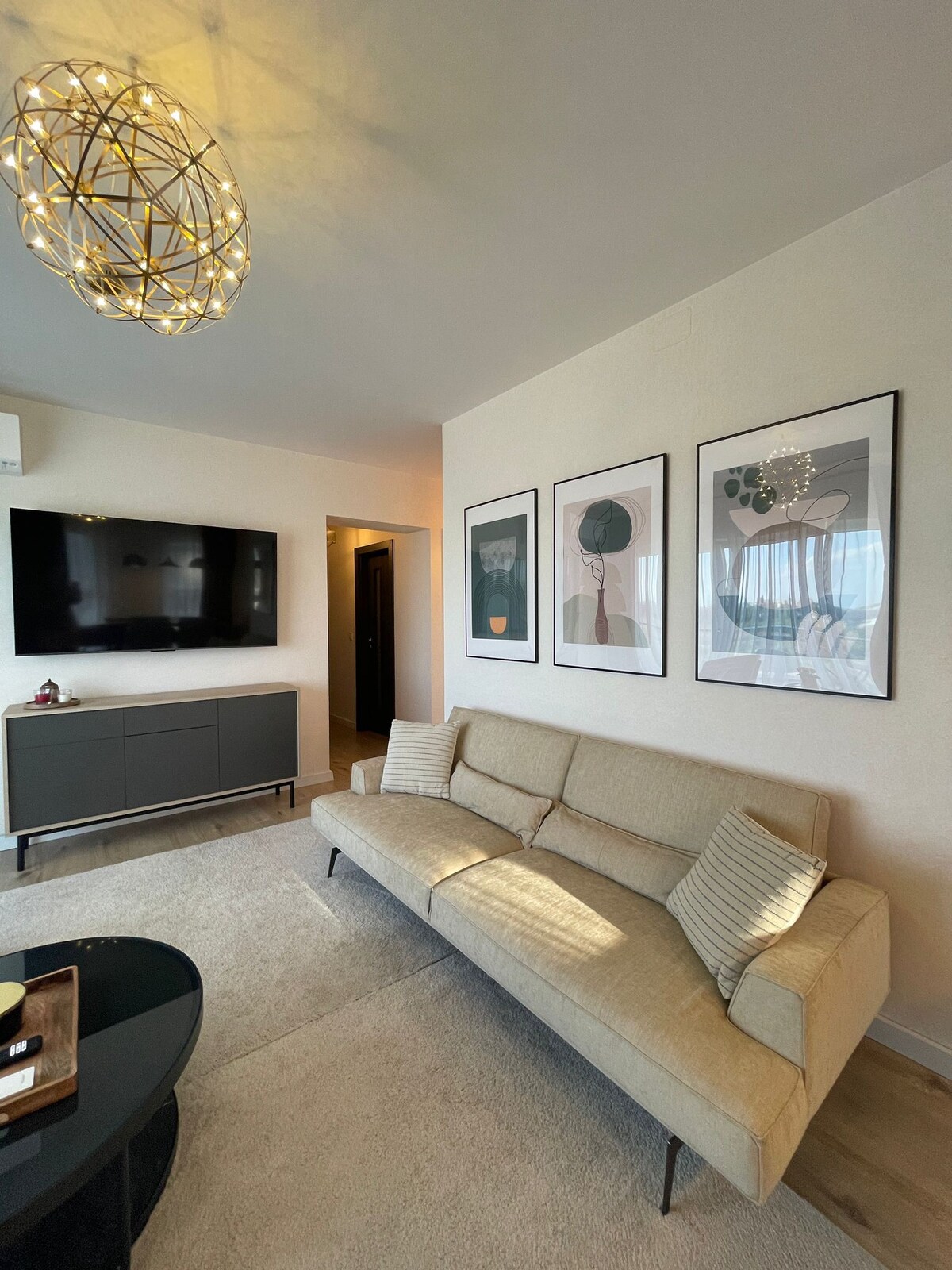 Every home is different and everything you could ever want is here. This premium remarkable apartment is an excelent deal. 2 bedrooms with 160 x 200 beds, 1 livingroom with an extensible couch that can accomodate up to 6 persons, 2 bathrooms with tub. Gym, mall, business district, restaurants, underground metro, fully equipped kitchen, coffee and tea stations, washer & dryer, hairdryer, steam iron, 2 large TV, 3 AC silent units, gas boiler. Free WiFi, free parking, new block. Perfect location.
