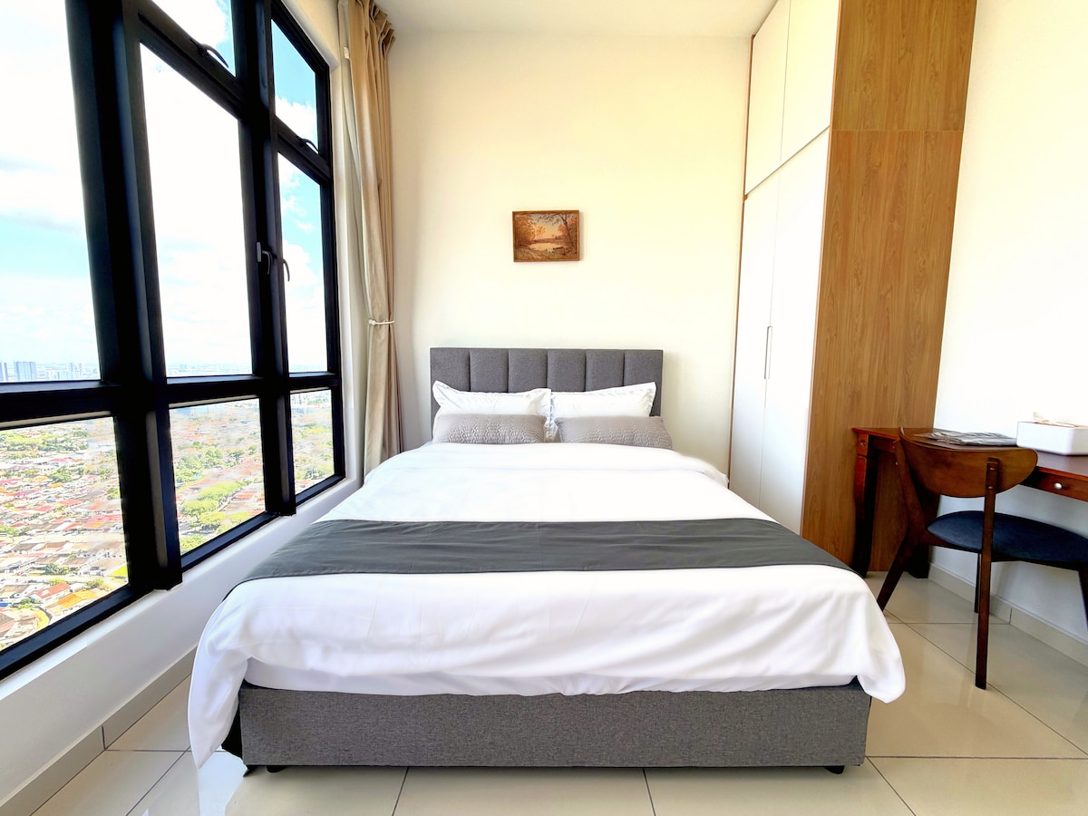 Luxurious spacious 3-Bedrooms unit with Bathtub! Premium quality King & Queen size Beds that guarantee good sleep here with amazing Midvalley Southkey Mall view! Main Highlight! -Private Bathtub -65" Smart TV with YouTube and Netflix apps -Pool Table -Retro Game Console -Drinking water Dispenser Surround with shopping mall & wide range of local tasty food - 2 mins drive to Midvalley Southkey JB - 5 mins to KSL City Mall - 8 mins to City Square Mall & Custom JB