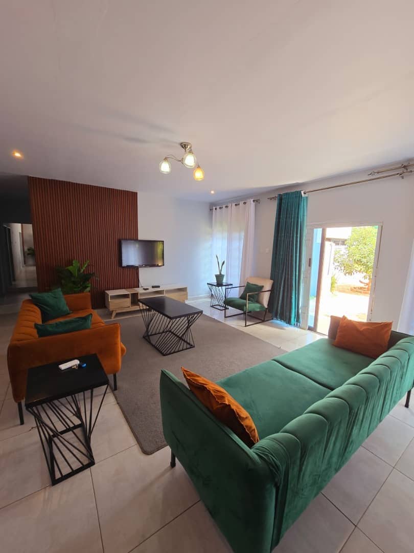 This beautifully furnished apartment is nestled in the warm neighbourhood of Foxdale offering a peaceful yet stylish escape in Lusaka. FEATURES: • Hybrid solar inverter(Back up power) • Gas stove • Solar Geyser • Washing Machine • Air-conditioning • Fully serviced • Fully equipped kitchen • WIFI •Smart Samsung T.V (Netflix, Youtube, Prime) •Work Desk(if requested) •Free Parking • House Keeping • Laundry service