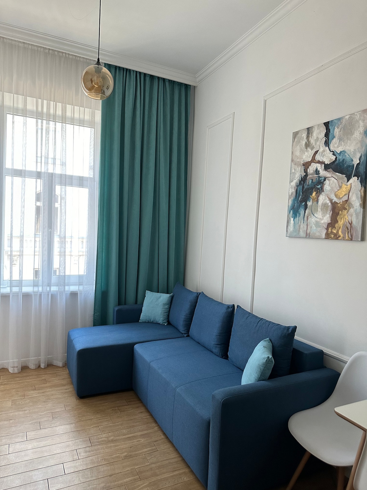 New apartment in the heart of the city located on a quiet street will allow you to relax despite the noise outside the door. The room has everything you need even for your long stay: fitted kitchen, refrigerator, induction hob and everything you need for cooking ,washing machine with dryer,internet and smart tv.Near restaurants,entertainment venues,cathedral,aquarium. Wellcome🩵💛