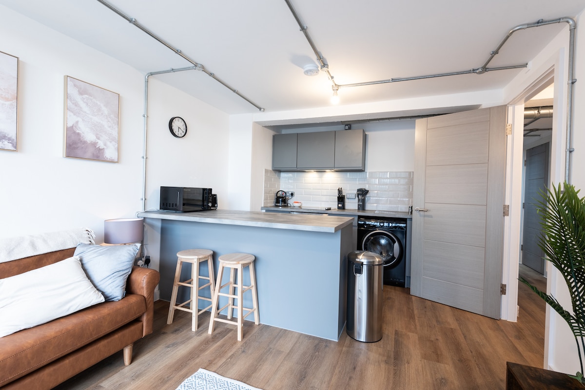 A Brand new Luxurious 1 Bed Apartment with a Sofa Bed styled with premium oak furniture. Its Bright, Spacious & Comfortable Situated conveniently across from Emirates Old Trafford and merely a 5-minute stroll to the legendary Manchester United Stadium, it offers a prime location. Moreover, a brief 5-minute walk will lead you to the tram stop, providing direct access to the bustling City Center. Experience the perfect blend of history, sports, and entertainment during your stay