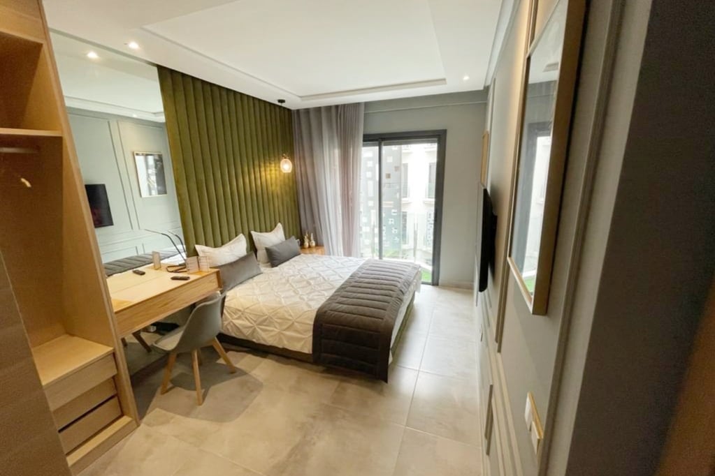 Unwind in our luxurious studio, where comfort meets convenience in one of Casablanca’s most desirable neighborhoods. Featuring elegant design, a private gym, and a spacious balcony—perfect for your morning coffee or enjoying breathtaking evening views. With top restaurants, shops, and must-see attractions just a short walk away, you'll have everything at your doorstep. Whether you're visiting for business or leisure, it's the ideal escape to relax and recharge.