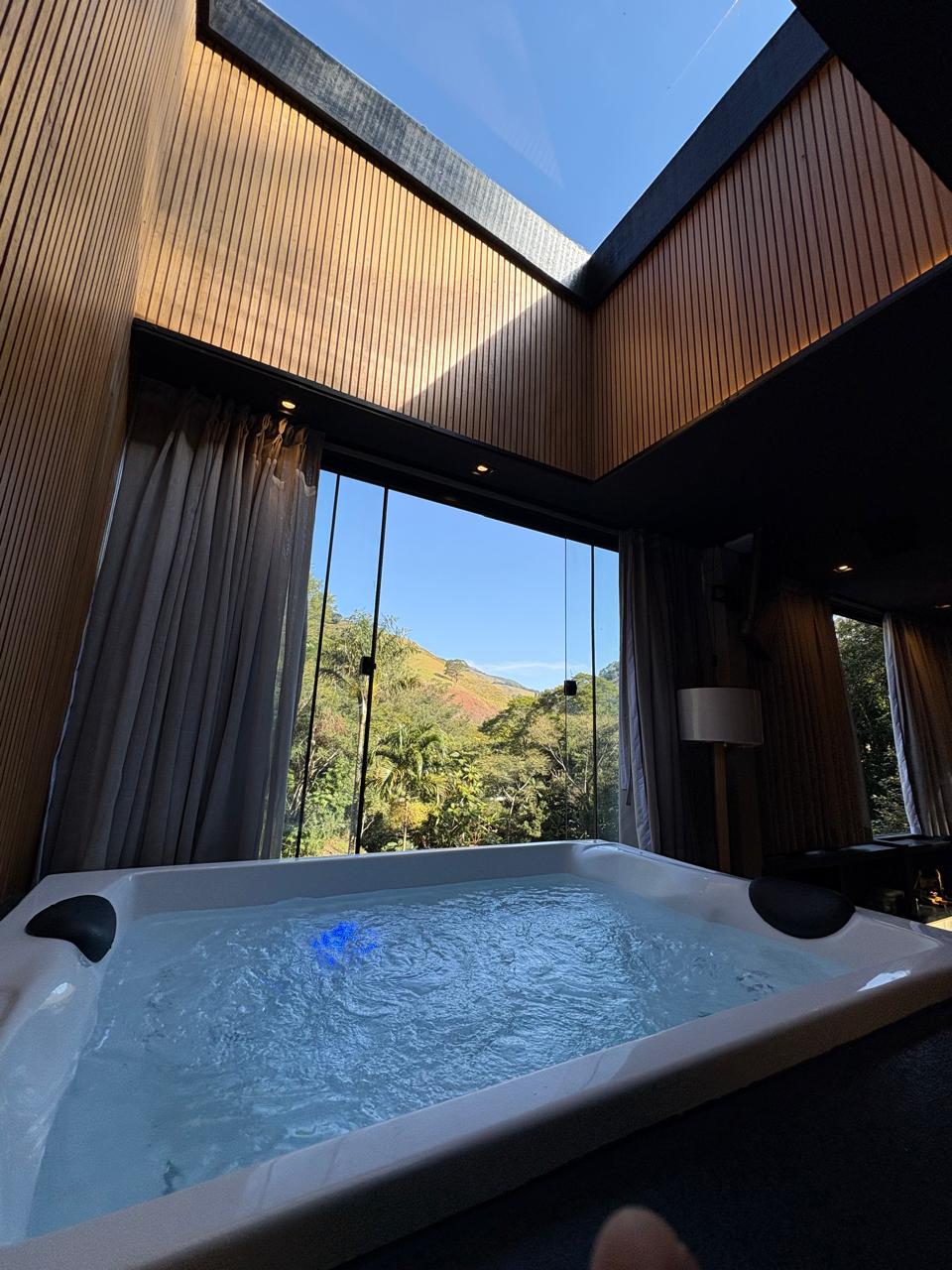 Our chalets were designed to offer moments of tranquility, comfort and connection with nature. We are located in the district of Frade, in the mountainous region of Macaé. We have a deck facing the river and an indoor area with an induction stove, air fryer, microwave, minibar and electric coffee maker. We have a hydromassage option, with space for four people, and a jacuzzi, with space for two people.