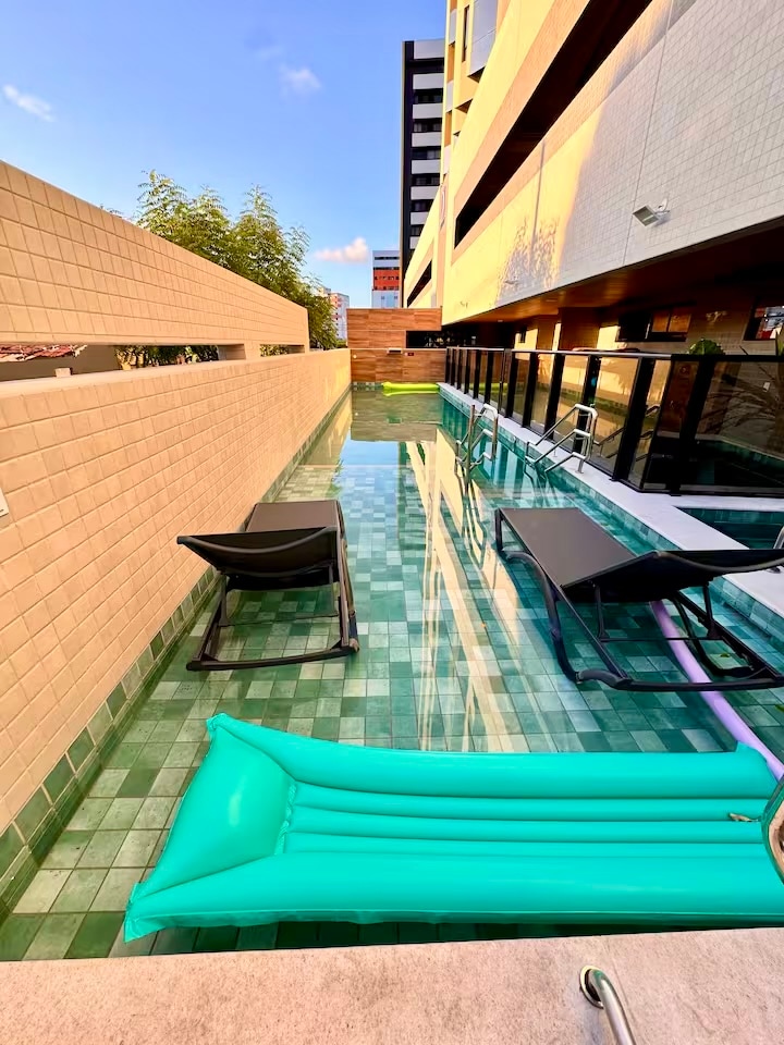 Enjoy a unique experience in Maceió, staying just 40 meters from Pajuçara Beach, one of the most beautiful and beloved in the Northeast. Our studio has been carefully designed to offer comfort, elegance and a sense of well-being in every detail. At the top of the building, discover the real postcard: an infinity pool with a 180º panoramic view of the sea, perfect for admiring the best sunset in Maceió.
