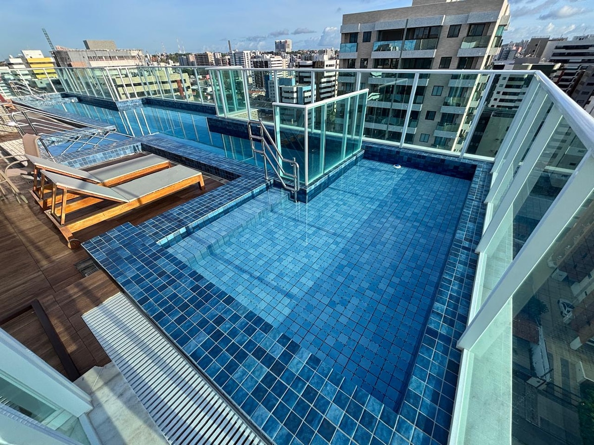 Luxurious beachfront apartment with stunning views of the famous natural pools of Pajuçara Beach. A truly unique experience in an elegant, comfortable suite with a breathtaking oceanfront view. A more sophisticated and innovative development, a structure worthy of a resort: 24-hour reception, infinity pool, rooftop with panoramic view, gym, game room, playground and spa. Close to the best restaurants, bars, tapioca shops, and waterfront fairs.