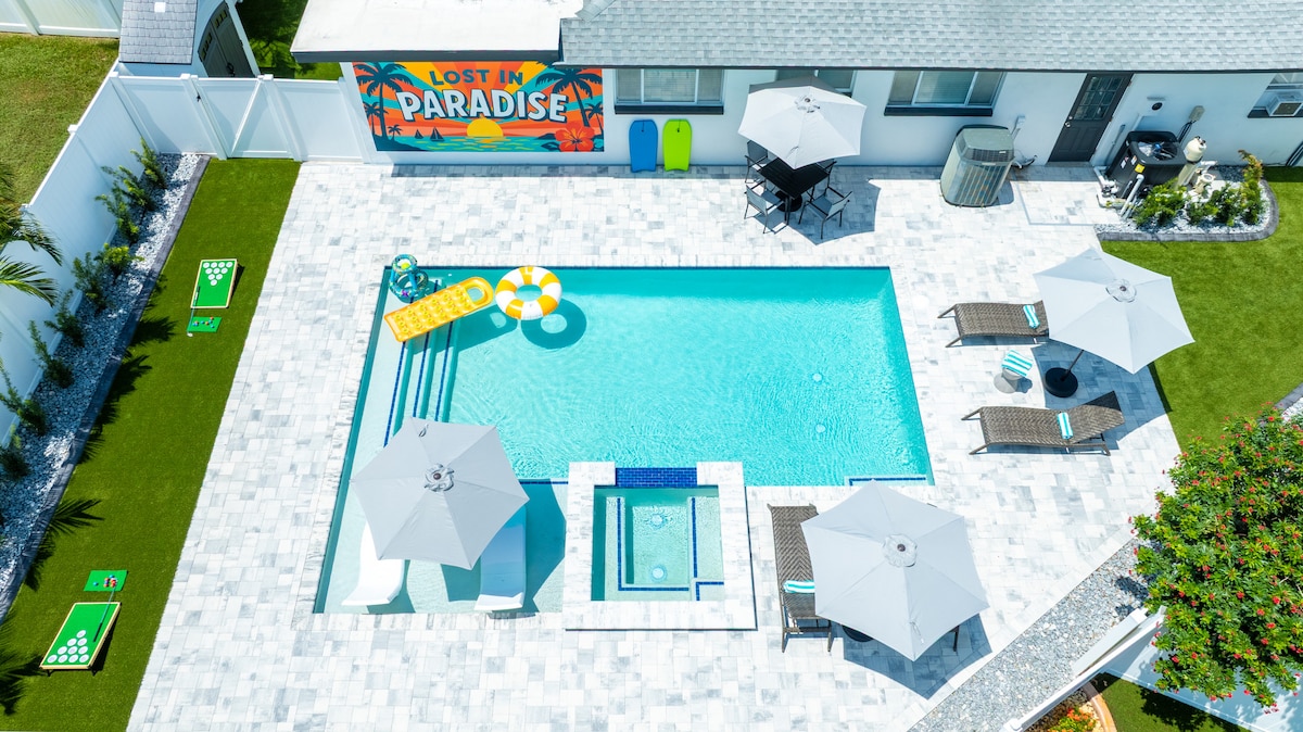 Beach Vacation Dream Pool Home-5 Mins to Beach