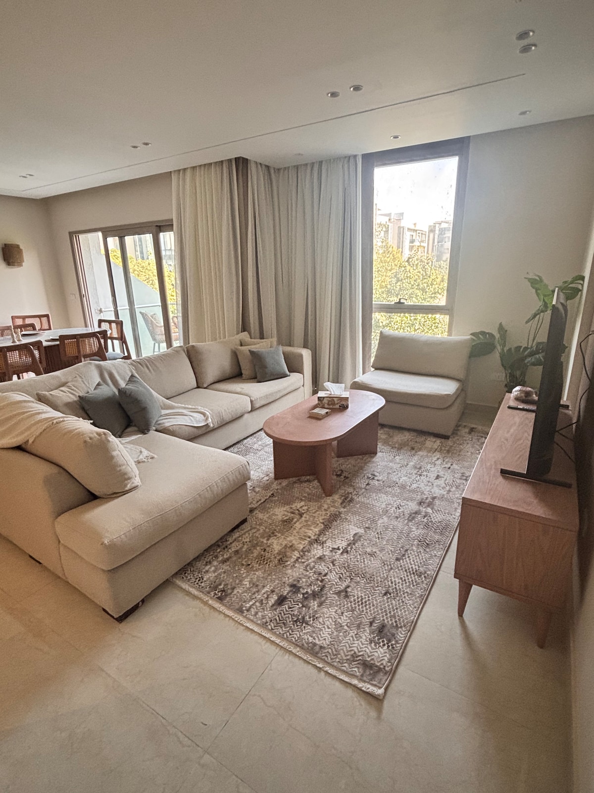 Experience luxury in this 3-bedroom apartment in a 24/7 secure compound in New Cairo--25 mins from the airport. Features a master bedroom, smart TVs, high-speed Wi-Fi, and premium furniture with luxury dinning set. Enjoy a shared pools, green spaces, and beautiful views. Close to top malls, cinemas, restaurants and everything you need. Perfect for families or business stays, book your stay now